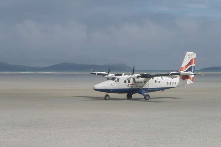 Op het Schotse eiland Barra ligt Barra Airport. Dit vliegveld ligt op het strand van Cockle beach en heeft 3 landingsbanen van zand. De vliegtuigen kunnen alleen landen als het water laag staat. Bij vloed worden de banen door de zee overspoeld. Er wordt gelukkig wel een teken gegeven als er vliegtuigen gaan landen. Dan mag je niet op het strand komen. Barra behoort tot de Hebriden en voor wie liever per auto reist kan je ook de ferry nemen vanuit Oban (Castlebay). Barra is echt waanzinnig mooi en ongerept.
