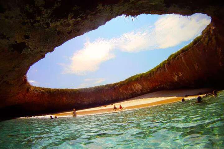 De Marieta Islands zijn kleine eilanden voor de kust van Mexico. Deze eilanden behoren tot een beschermd natuurgebied, waardoor er veel mooie vissen en koralen zijn. Er komen dan ook veel toeristen op af om te snorkelen. Maar de toeristen komen ook voor het verborgen strand. Dit strand is alleen zwemmend te bereiken via een watertunnel. Het strand is deels overdekt door het land, maar er is een groot gat waar de zon doorheen komt.