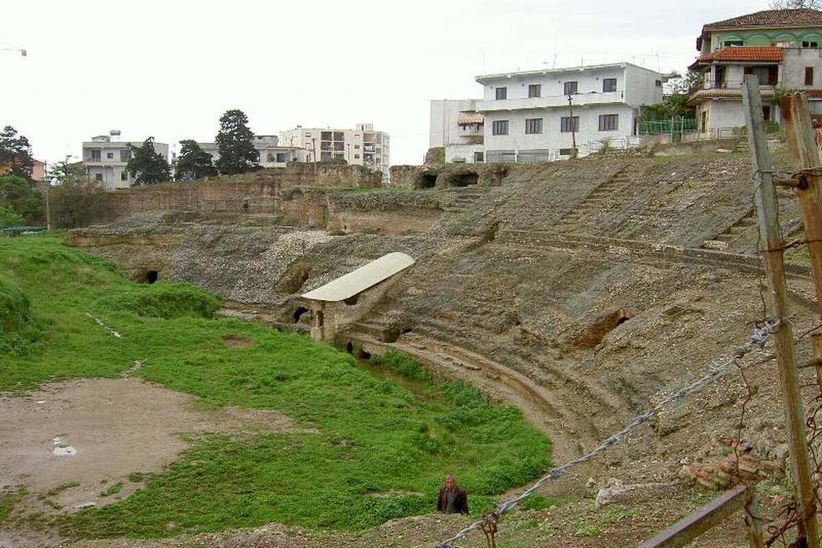 Het grootste amfitheater op de Balkan werd in de 1e eeuw door de Romeinen gebouwd. Het theater bood plaats aan 15.000 mensen. In de 4e eeuw verloor het zijn functie als theater en werd het gebruikt voor nieuwe doeleinden. Zo werd er onder de tribunes een kapel gevestigd, waarvan een mozaïek goed bewaard is gebleven. Het amfitheater raakte in de vergetelheid toen het in de late Middeleeuwen werd overbouwd. In de 20e eeuw werd het ontdekt bij het aanleggen van een wijnkelder. Hierna is het opgegraven en blootgelegd.