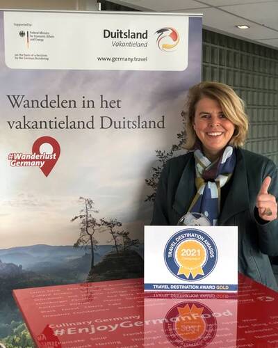 | Reactie Duits Verkeersbureau: ''Wij zijn erg blij en vereerd met de gouden Reisgraag Award en de waardering van jullie bezoekers en onze gasten voor het vakantieland Duitsland. Duitsland is met meer dan 3,7 miljoen vakanties by far de meest belangrijke buitenlandse bestemming voor Nederlanders. Helaas hebben ook wij het afgelopen jaar 31% minder vakanties van Nederlanders genoteerd. Het jaar 2021 is voor ons een overgangsjaar in verband met toerisme, maar de vooruitzichten zijn positief. Volgens de laatste enquête van het NBTCwil 71% van alle Nederlanders dit jaar op vakantie gaan. Vele hopelijk opnieuw naar Duitsland - want Duitland is dichtbij, gastvrij, betaalbaar en toch zo anders. Wij hopen natuurlijk dat wij ook de bezoekers van reisgraag.nl (of jullie bezoekers) weer zo snel mogelijk veilig kunnen ontvangen. Die Niederländer werden mit Sehnsucht erwartet!”Michaela Klare, directeur Duits Verkeersbureau | ![]() |