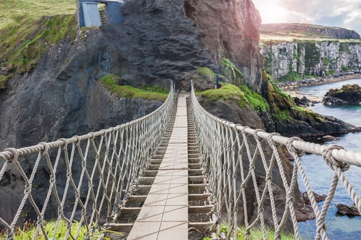 Vanaf Belfast kun je de Antrim Coast bezoeken met de ruige kliffen en de touwbrug van Carrick-A-Rede.