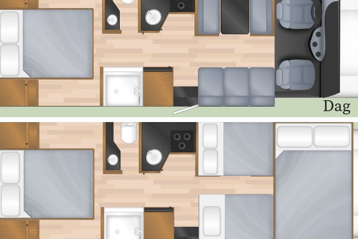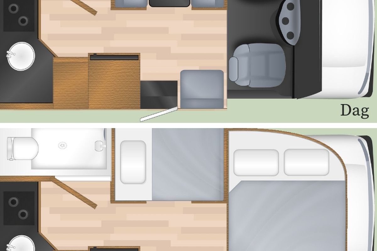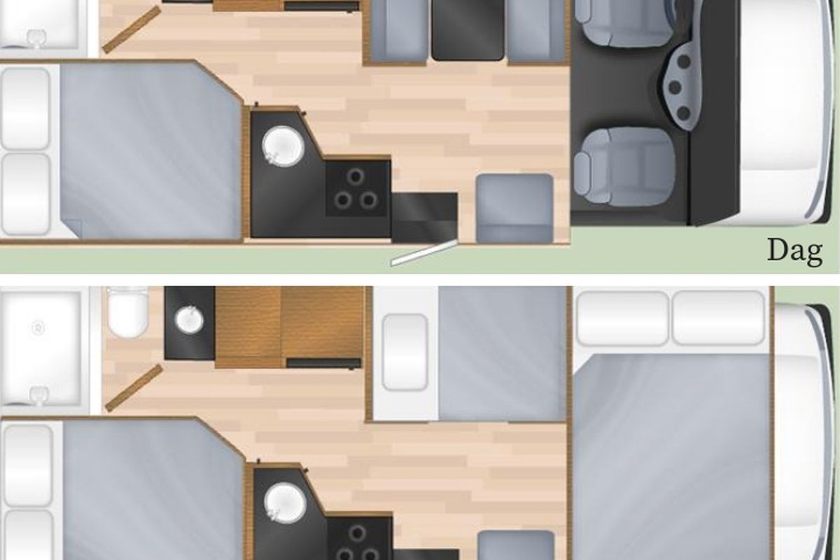 NB Het kan voorkomen dat deze indeling en de hier vermelde informatie iets afwijken van de camper die u krijgt. Dit kan verschillen per bouwjaar van de camper.